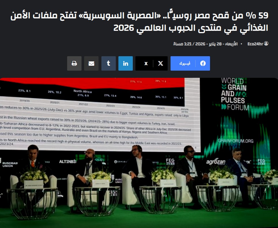 egyptian swiss Participates in the 2026 Russian Global Grains and Pulses Forum and Highlights the Importance of Partnership with Moscow