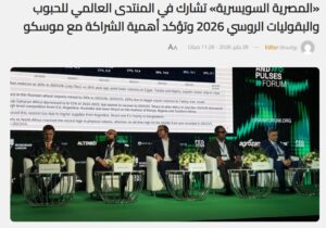 The egyptian swiss Group for Pasta, Milling, and Concentrates participated in the 2026 Russian World Grain and Pulses Forum, held on January 26–27, with high-level participation from agriculture ministers, government officials, leading global grain trading companies, representatives of international organizations, and agricultural market experts.